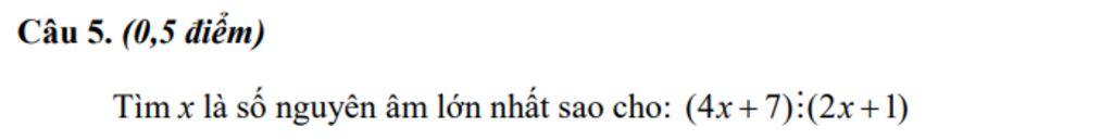 Mà `x` là số nguyên âm lớn nhất nên `x = -1`