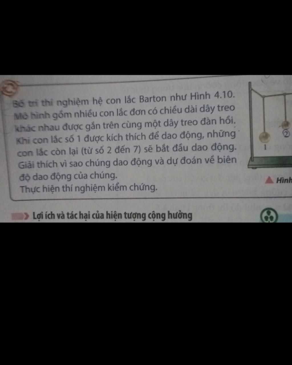 Số trí thí nghiệm hệ con lắc Barton như Hình 4.10.