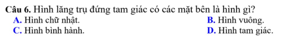 Hình lăng trụ đứng tam giác có các mặt bên là hình chữ nhật