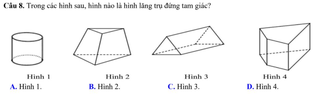Hình lăng trụ đúng tam giác là hình có `2` đáy tam giác