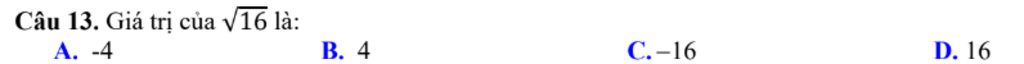 Vậy giá trị của `sqrt{16}` là: `4`