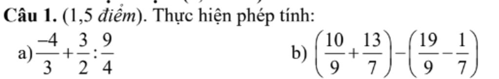 `b)` `(10/9 + 13/7 ) - ( 19/9 - 1/7 )`