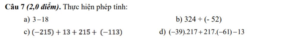 `(-39) . 217 + 217 . (-61) - 13 = 217 . [(-39) + (-61)] - 13`