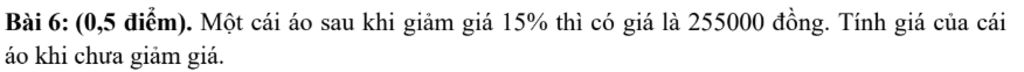 `255000 : ( 100%-15%)= 300000` ( đồng)