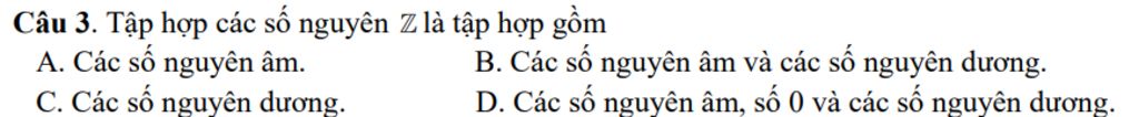 `ZZ` là tập hợp các số nguyên âm và nguyên dương và `0`
