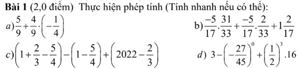 `a)` `5/9 + 4/9 * (-1/4)`