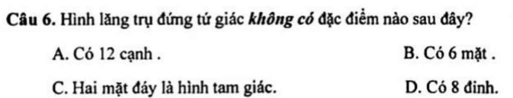 Hình lăng trụ đứng tứ giác có một mặt đáy là hình tứ giác