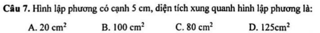 Vậy diện tích xung quanh của hình lập phương là `100` `cm^2`