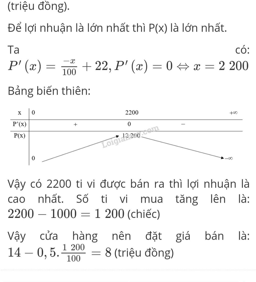 c) Nếu hàm chi phí hằng tuần là C(x) =12000 -3x (triệu đồng), trong đó x là số ti vi bán ra trong tuần, nhà sản xuất nên đặt giá bán như thế nào để lợi nhuận là lớn nhất?