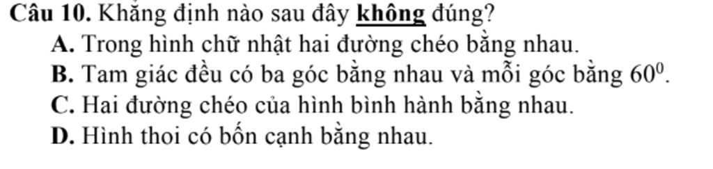 C. Hai đường chéo của hình bình hành bằng nhau.