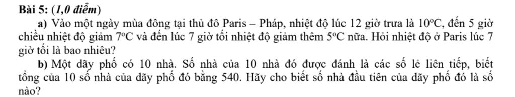 Vậy nhiệt độ ở Paris lúc `7` giờ tối là `-2^o C`