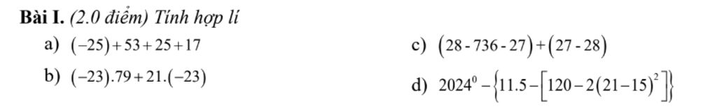 Bài I. (2.0 điểm) Tính hợp lí