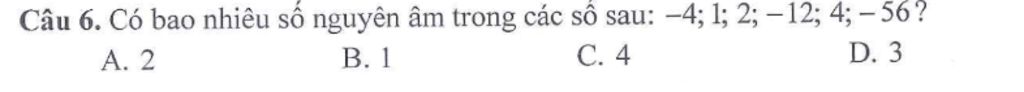 Số nguyên âm gồm: `-4;-12;-56` `->` `3` số