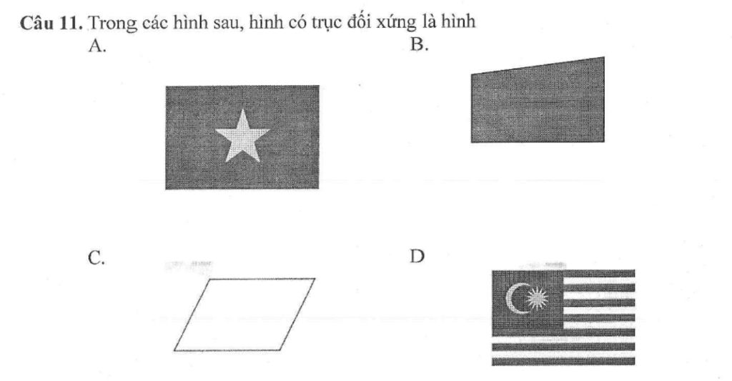 D. Mặc dù là hình D là hình chữ nhật nhưng không có trục đối xứng.