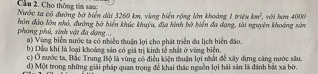 ( Vùng biển nước ta có nhiều thuận lợi cho phát triển du lịch biển đảo )