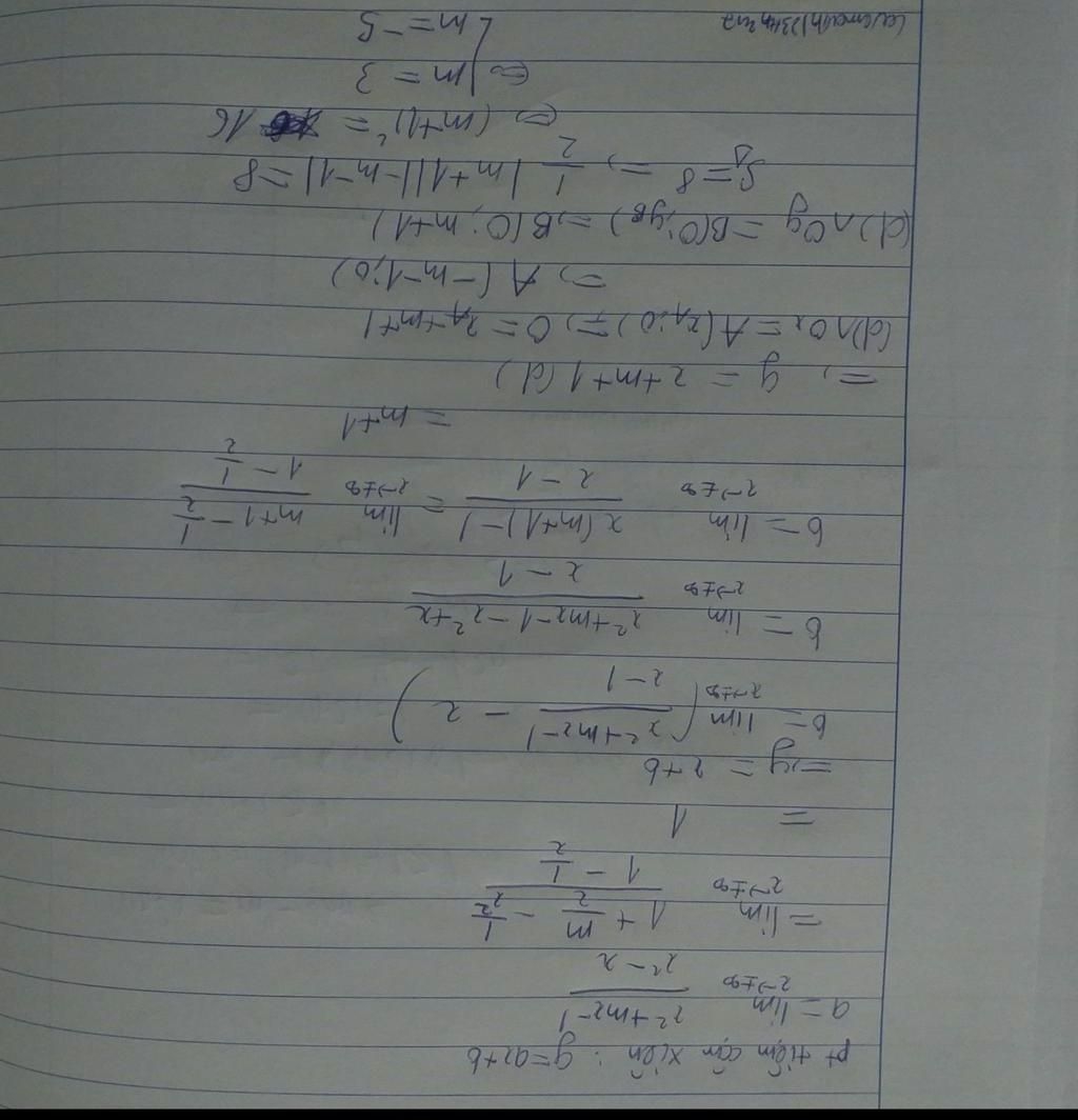 Cho hàm số y=x^2+mx-1/x-1. Tìm m để tiệm cận xiên của đồ thị hàm số tạo với 2 trục tọa độ một tam giác có diện tích bằng 8.