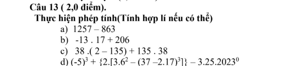 Câu 13 ( 2,0 điểm). Thực hiện phép tính(Tính hợp lí nếu có thể)