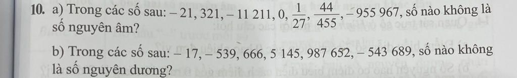 `a)` Số không phải số nguyên âm là: `0;1/27;44/455`