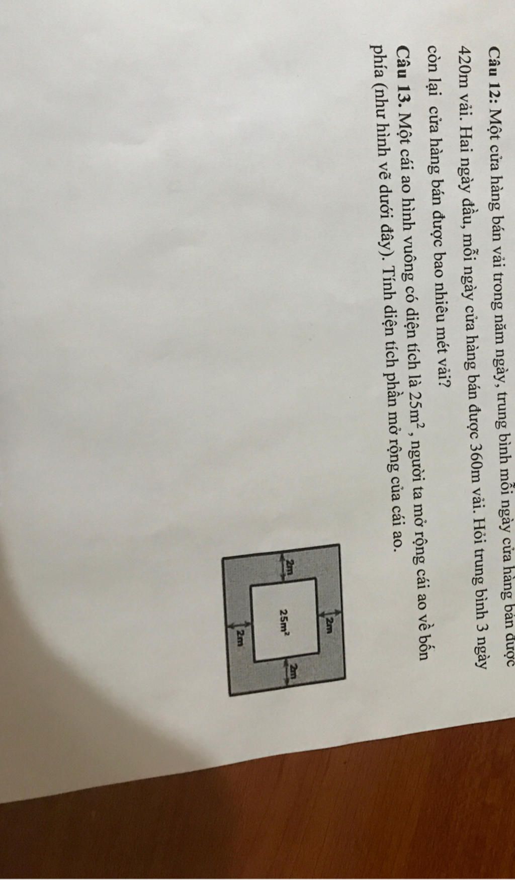 Trung bình ba ngày còn lại của cửa hàng bán được số vải là: