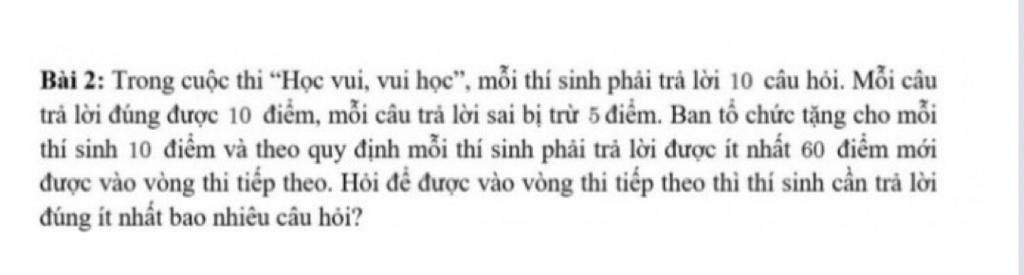 Gọi số câu trả lời đúng là $x$ câu $, (x\in N, x\le 10)$