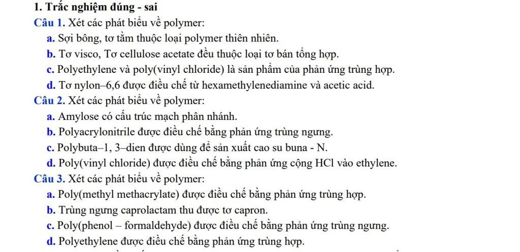 `d, S,` poly (vinyl chloride) được điều chế bằng phản ứng trùng hợp vinyl chloride