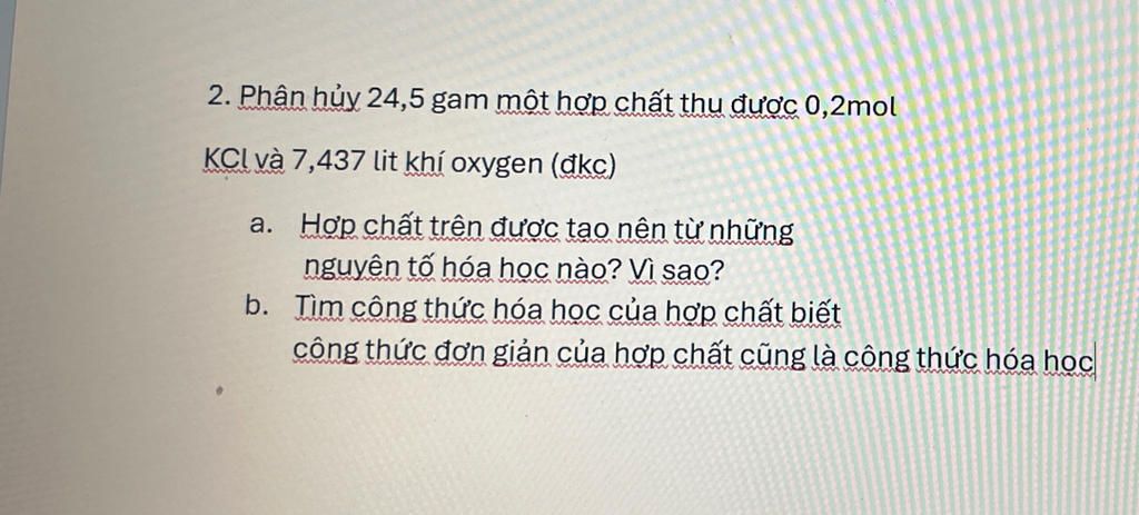 2. Phân hủy 24,5 gam một hợp chất thu được 0,2mol