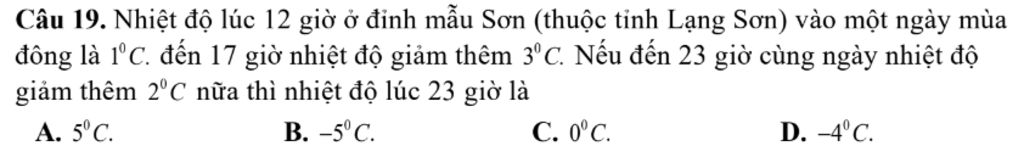 Câu 19. Nhiệt độ lúc 12 giờ ở đỉnh mẫu Sơn (thuộc tỉnh Lạng Sơn) vào một ngày mùa