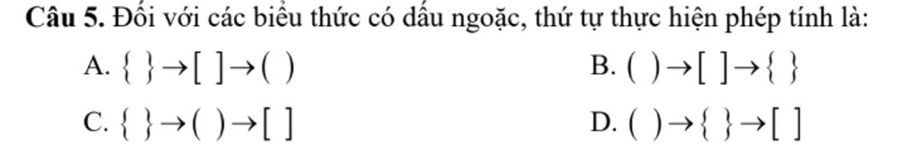 Thứ tự thực hiện phép tính biểu thức có dấu ngoặc là `:`