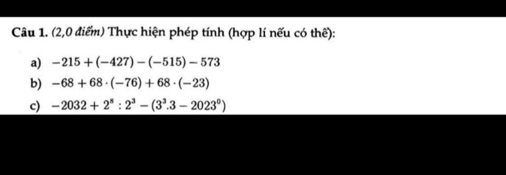 Câu 1. (2,0 điểm) Thực hiện phép tính (hợp lí nếu có thể):