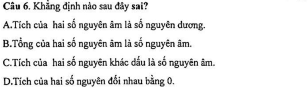 `D.` Sai vì tích của hai số nguyên đối nhau là số nguyên âm