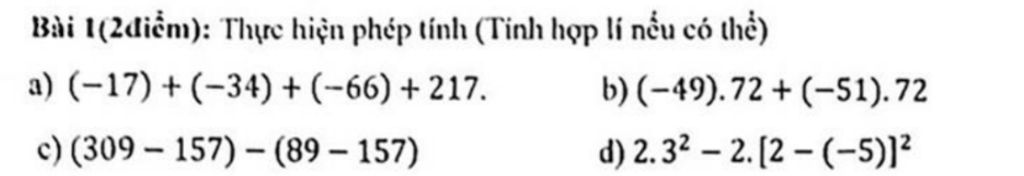 Bài 1(2điểm): Thực hiện phép tính (Tỉnh hợp lí nếu có thể)