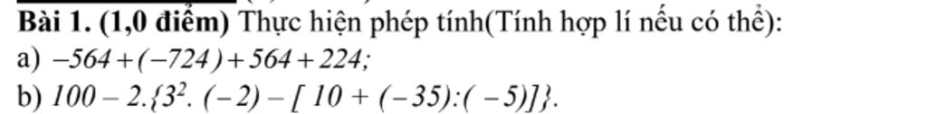 Bài 1. (1,0 điểm) Thực hiện phép tính(Tính hợp lí nếu có thể):