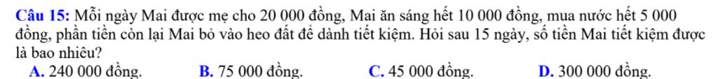 `***` Sau `15` ngày số tiền Mai tiết kiệm được là `:`