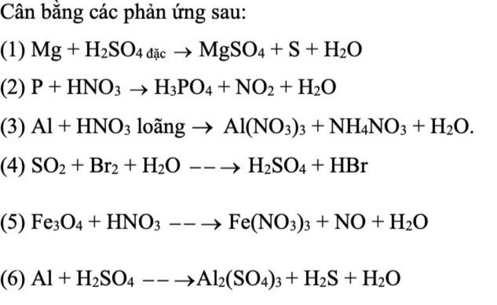 VD: aMg + bH2SO4 -> cMgSO4 + dS + eH2O