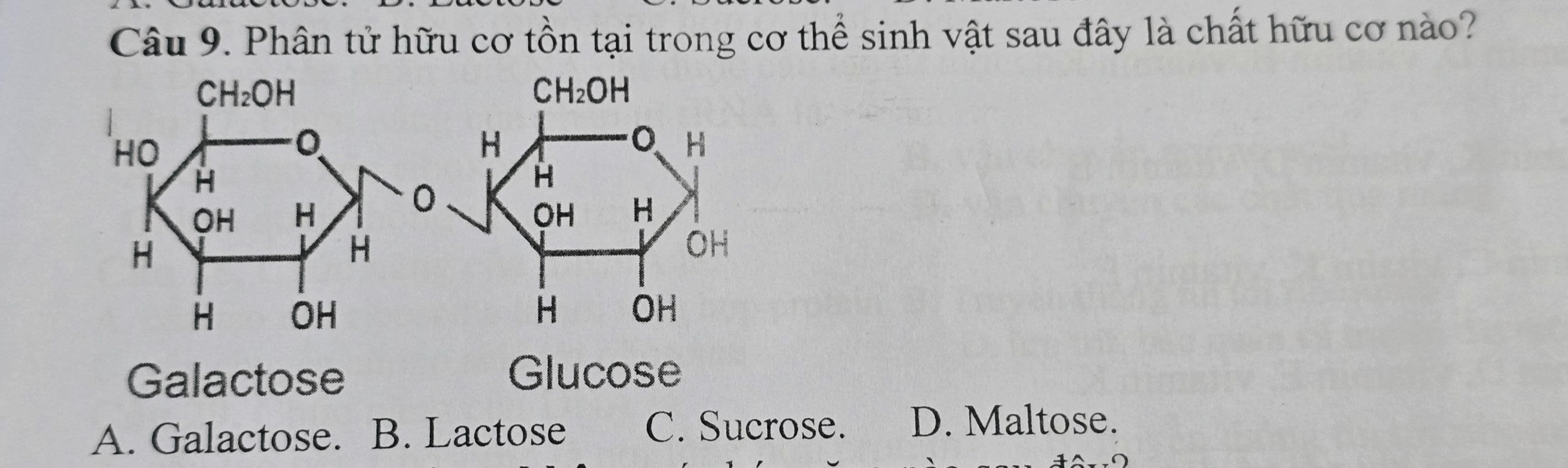 +Đường đa trên được cấu tạo từ đường đơn galatose và glucose `=>` Loại C