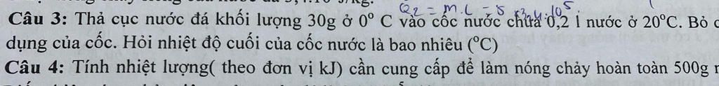 Vì `Q_1 < Q_2` nên nước đá nóng chảy hoàn toàn. Nhiệt độ cuối cùng của cốc nước là $t^oC$