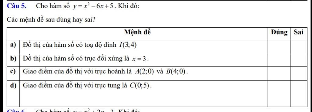 $\to (1, 0), (5, 0)$ là giao điểm của đồ thị với trục hoành