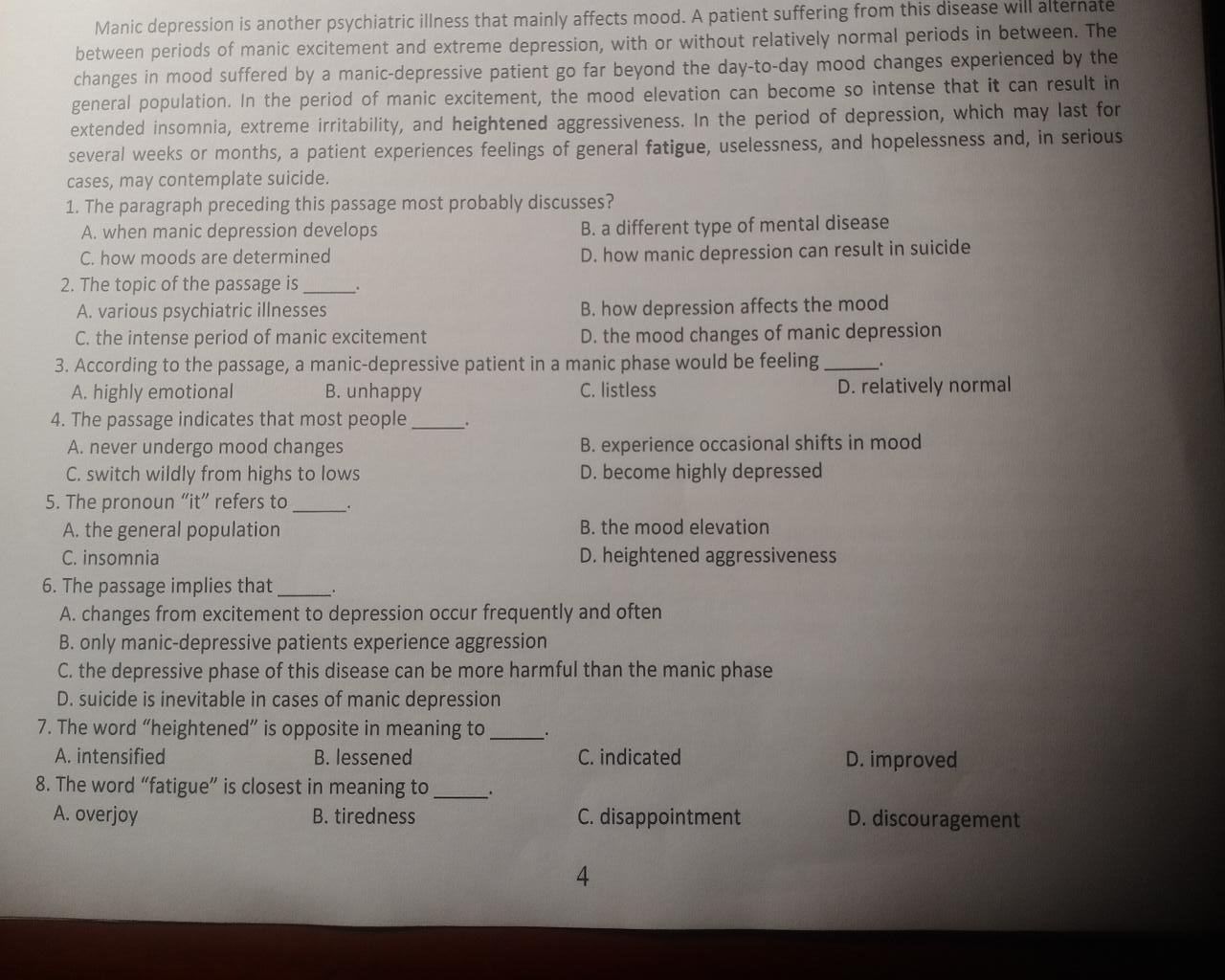 - Dẫn chứng: "The changes in mood suffered by a manic-depressive patient go far beyond the day-to-day mood changes experienced by the general population."