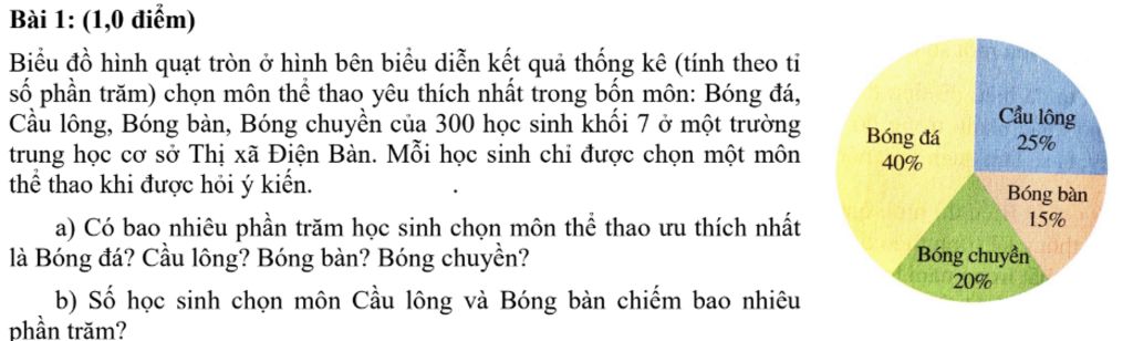 b) Số học sinh chọn môn Cầu lông và Bóng bàn chiếm bao nhiêu