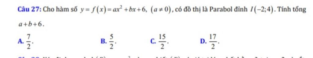 Đồ thị là Parabol đỉnh `I(-2,4)`