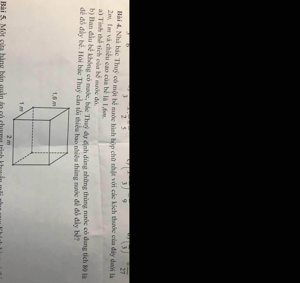 `b)` Vậy cần dùng số thùng nước để đổ đầy là: