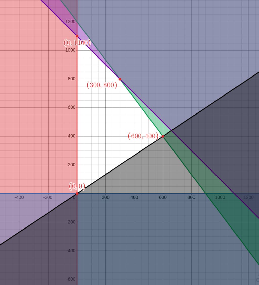 $$A(0,0), B(0,1100), C(300,800), D(600,400)$$