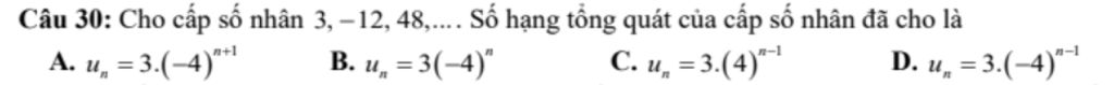 Ta có :` u_1 = 3 , q = -4 `