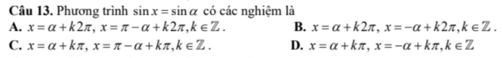 `-> x = a+k2π` hoặc `x = π-a+k2π (k∈Z)`