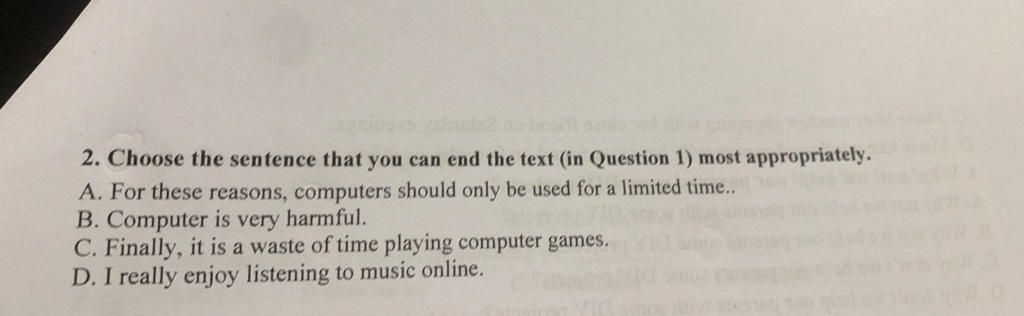 a. Besides, if you use the computer too much, you will not have time for your family and friends. In