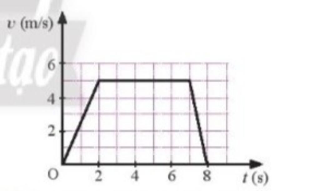Tại thời điểm từ `0->2s`, gia tốc của vật là `a=[Deltav]/[Deltat]=[5-0]/[2-0]=2.5(m//s^2)`