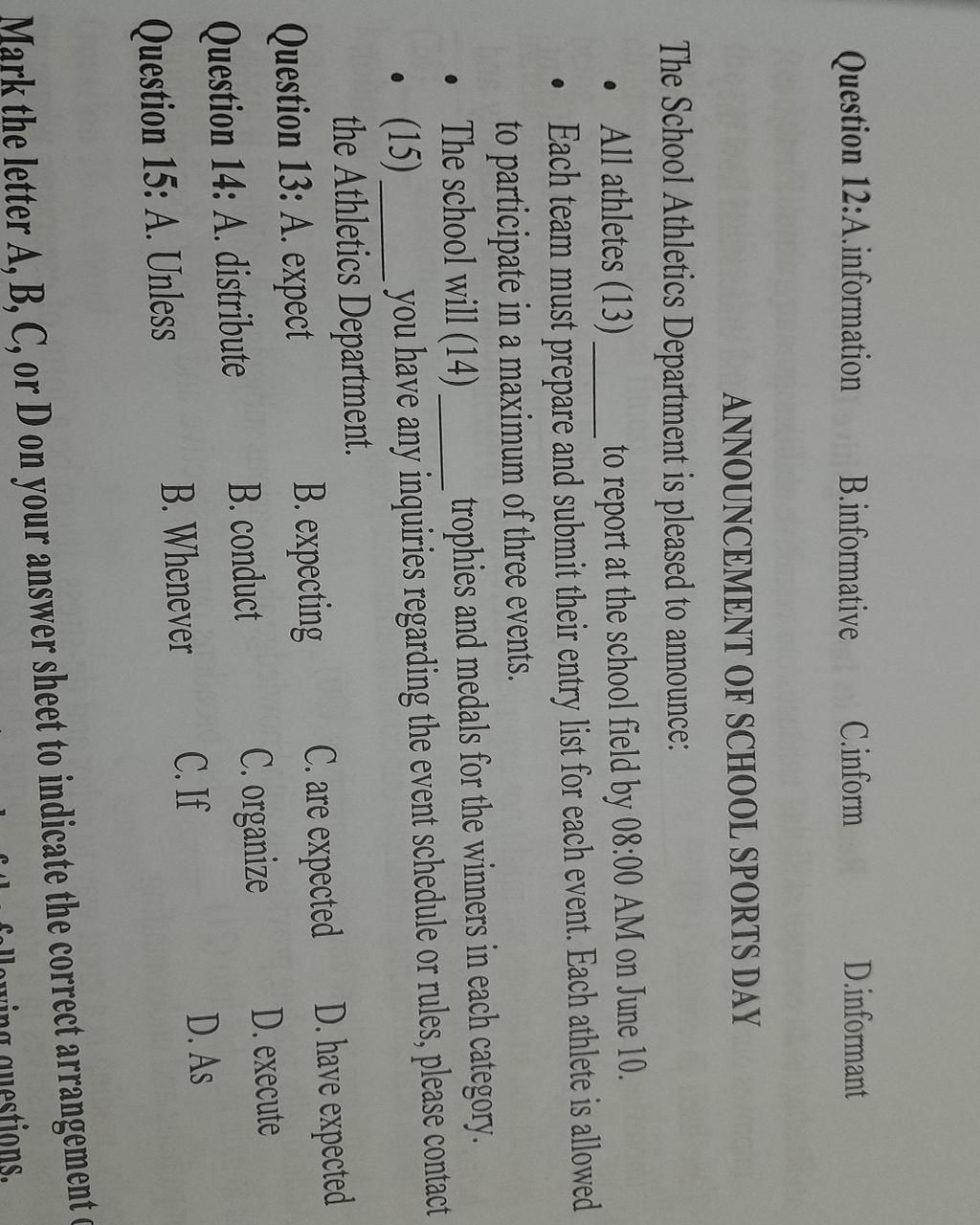Trans: tất cả các vận động viên được yêu cầu có mặt (trình diện) tại sân trường 08:00 sáng ngày 10 tháng 6.
