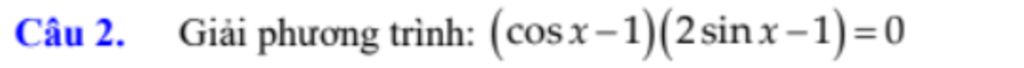 `<=>[(cosx-1=0),(2sinx-1=0):}`