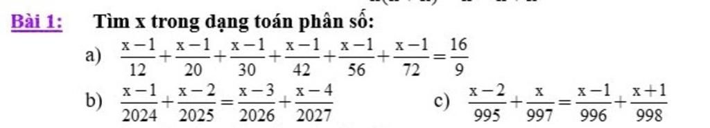`a)(x-1)/12+(x-1)/20+(x-1)/30+(x-1)/42+(x-1)/56+(x-1)/72=16/9`