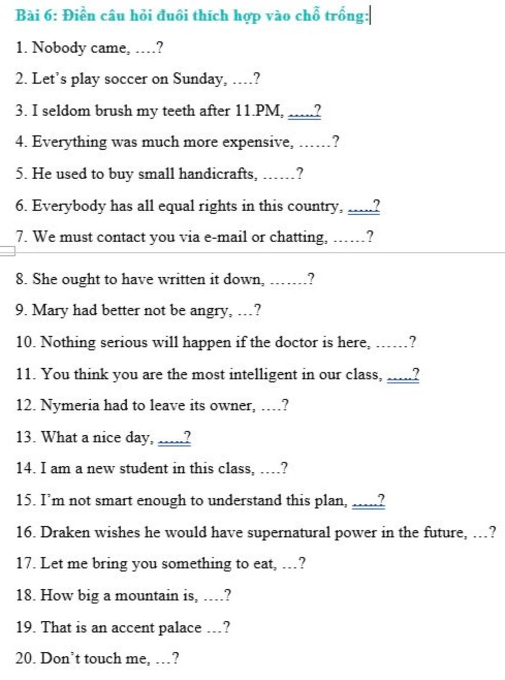 Câu hỏi đuôi: